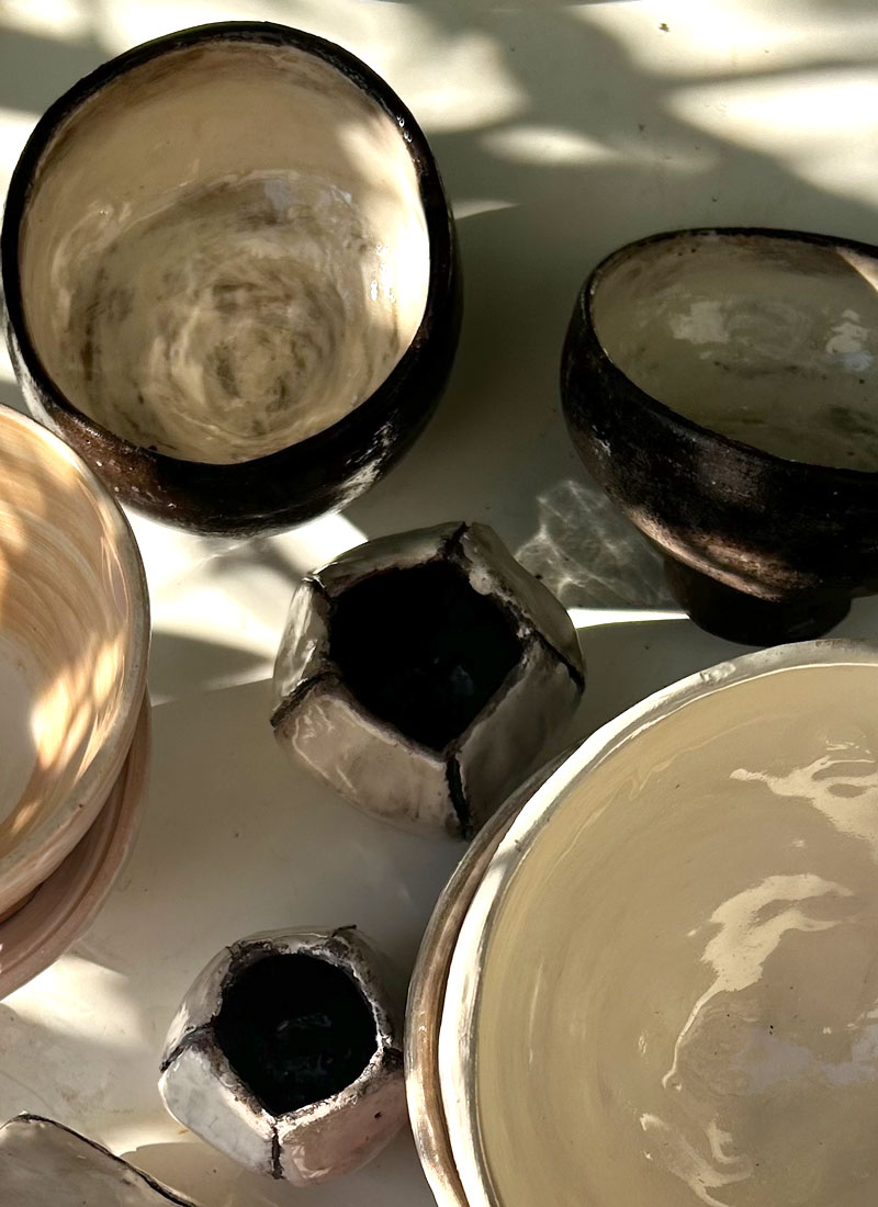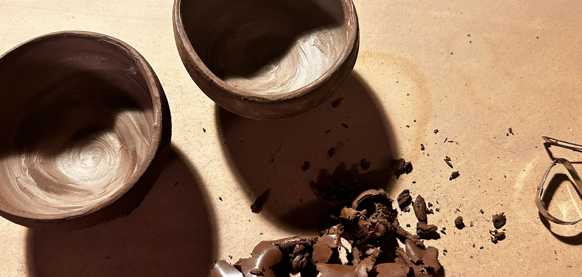 Couple bowls made of brown and white clay. The diameters and details may differ slightly from the images as they are handmade.