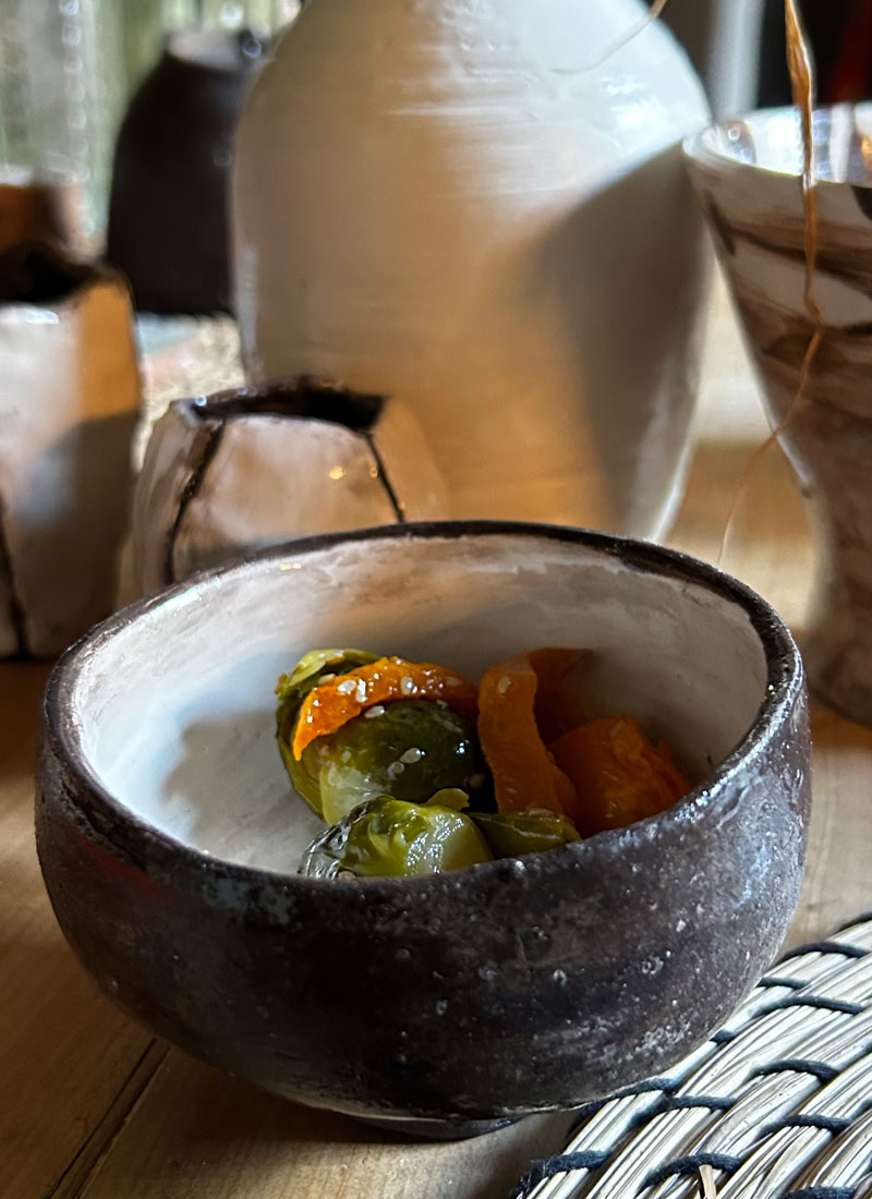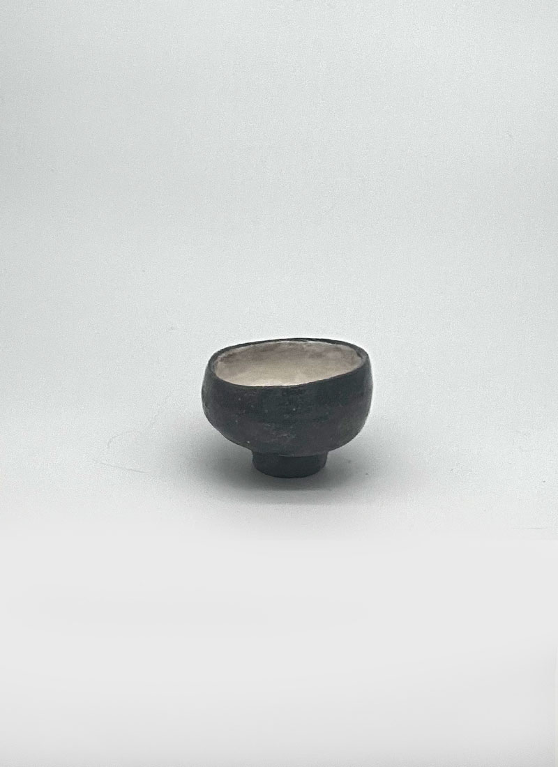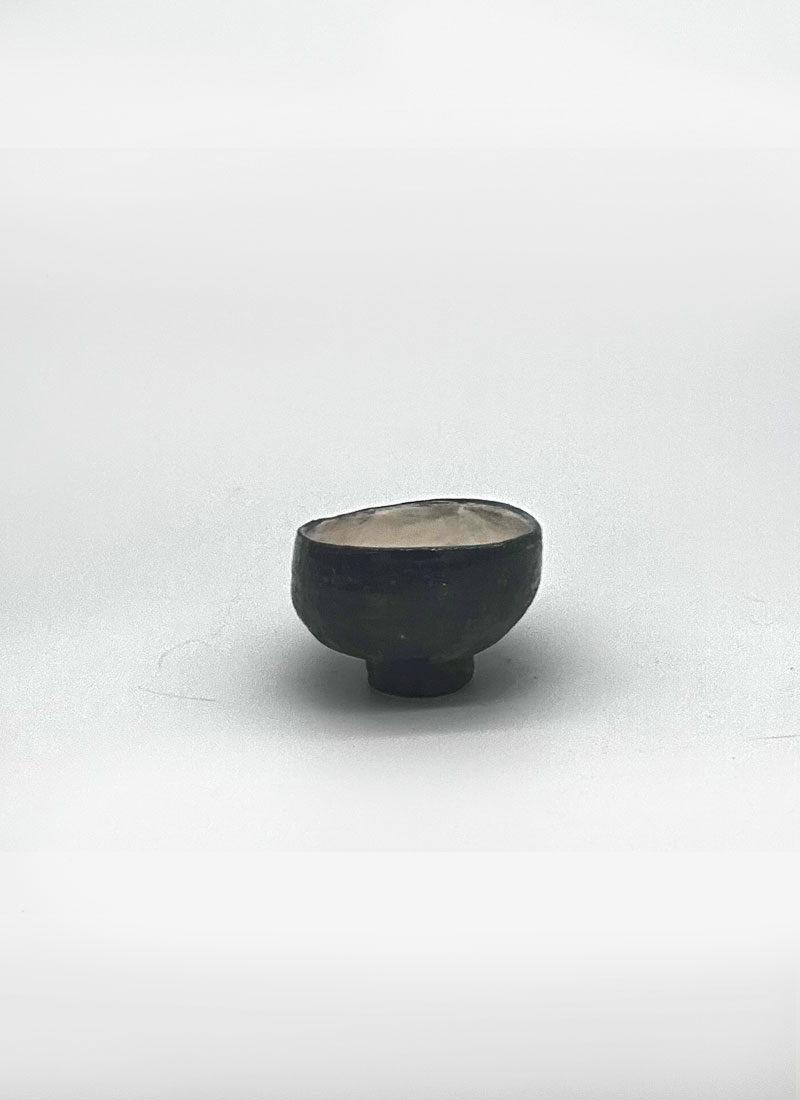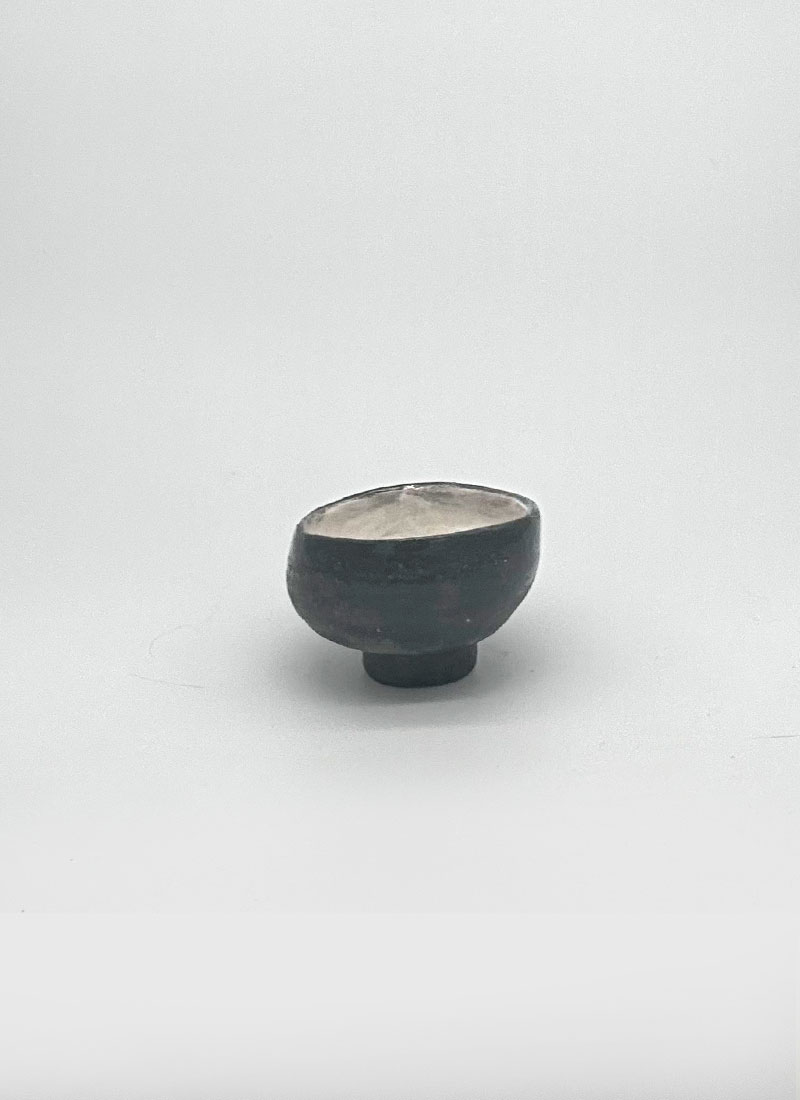 Bowl with thick, sturdy walls, interior treated with crystalline glaze, exterior walls unglazed.