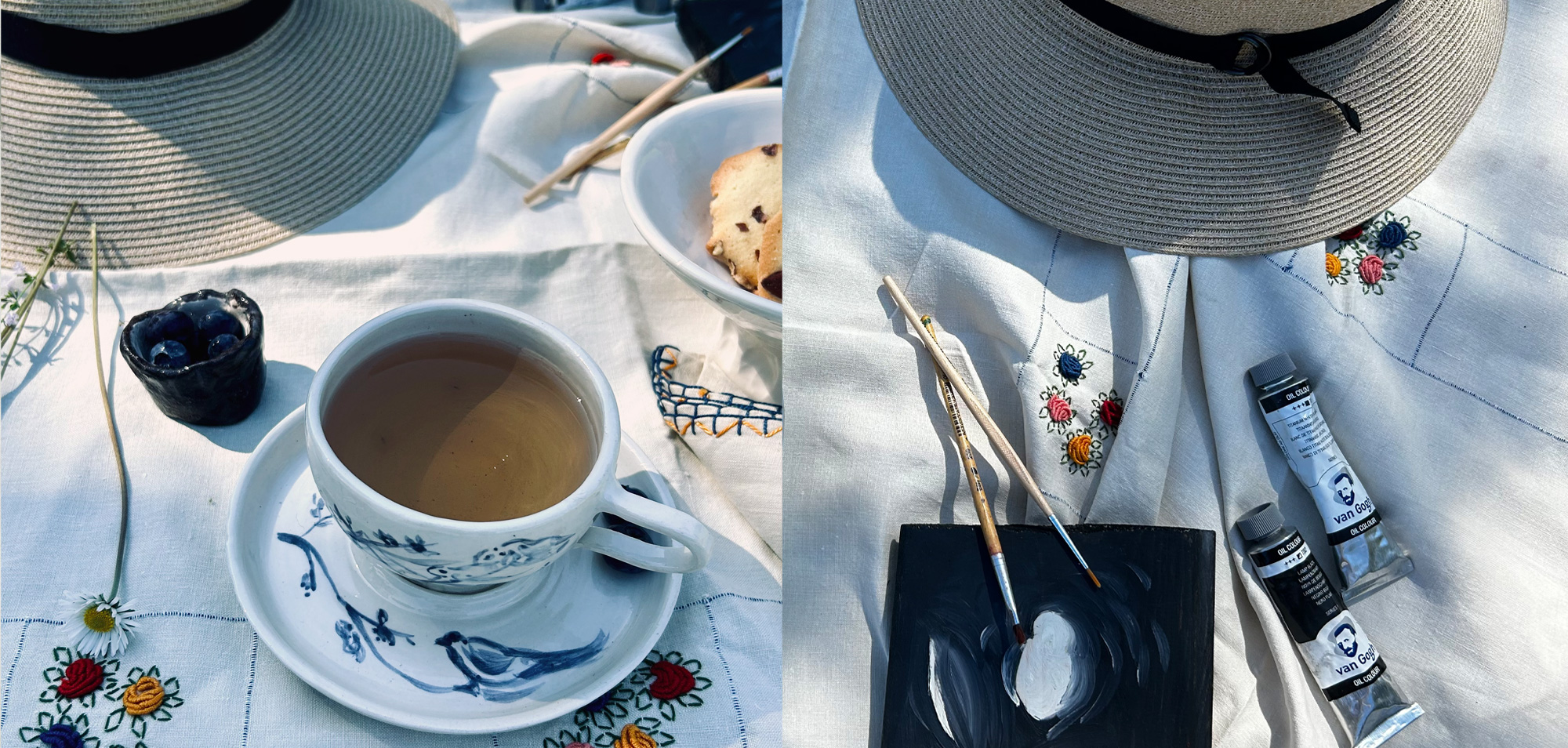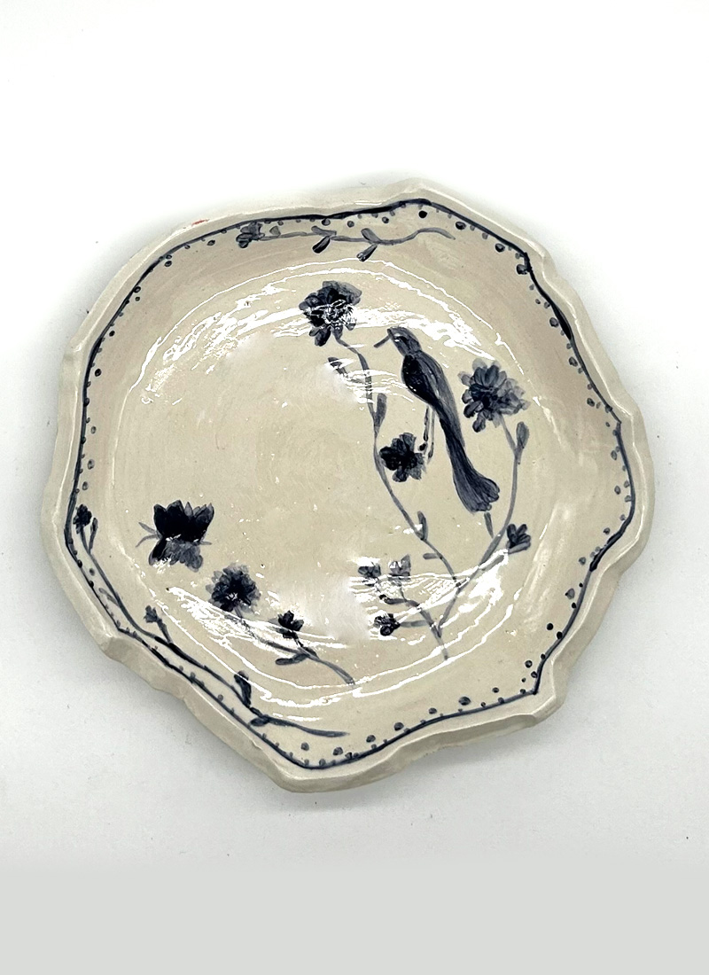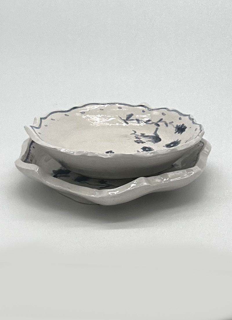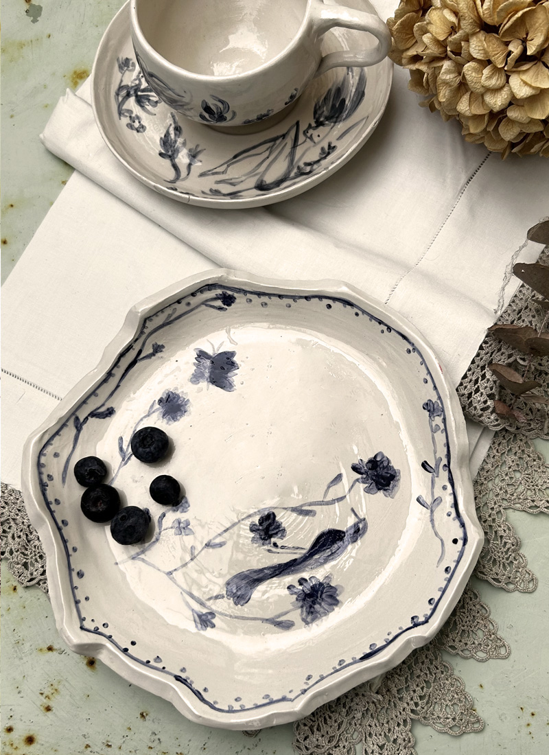 This plate set is part of a series of ceramics with evocative decorations that create little stories that are linked to each other or can also stand alone. A moment of peace should also bring a smile to your face.